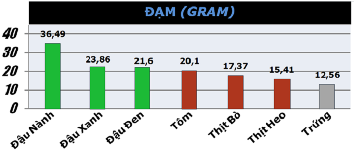 Trái với nhận định thông thường rằng đạm có nhiều nhất ở trong thịt, cá, trứng... Đậu Nành, Đậu Đen, Đậu Xanh là những thực phẩm giàu đạm nhất.