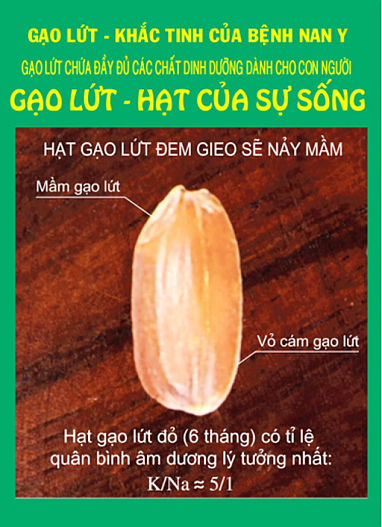 Gạo lứt được xem là lương dược để lập lại cân bằng Âm Dương trong cơ thể, dẫn đến hết bệnh tật, kể cả với bệnh nan y như: ung thư (bệnh cực Âm), tiểu đường (bệnh Âm), tim mạch (bệnh Âm), cao huyết áp (bệnh Âm), béo phì,… Chỉ ăn cơm lức với muối mè (ăn số 7) là cách ăn đơn giản nhất và có hiệu quả nhất để lập lại cân bằng cho cơ thể.